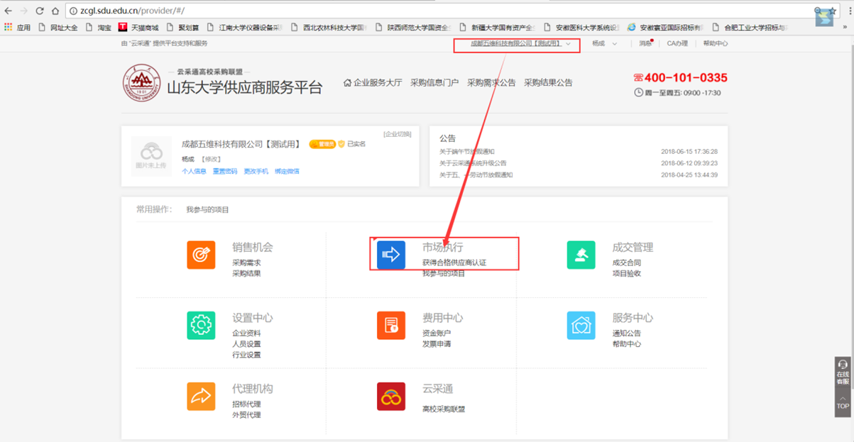 直接登陆http://zcgl.qdxq.sdu.edu.cn/provider/login.html